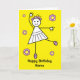 Dessin animé mignon d'une fille bâton souriante et dansant le ballet avec des chaussures de ballet roses. Elle est entourée de fleurs. La carte a un fond jaune vif, mais il est facile de le modifier pour une couleur différente ou un blanc minimal agréable. Personnalisez facilement cette carte en modifiant le texte du modèle sur le devant et à l'intérieur. Joli dessin drôle pour les enfants. Merci de consulter mes créations !