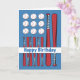 Les fans de base-ball aimeront cette carte d'anniversaire. Le drapeau américain est représenté par un thème de base-ball, avec des boules comme étoiles et des battes comme rayures. Célébrez le de premier rang avec cette carte d'anniversaire de drapeau de base-ball en rouge, le blanc et le bleu patriotiques !