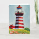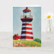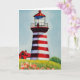 Un phare rayé rouge et blanc sur la plage. Carte d'anniversaire pour grand-père. Le texte peut être personnalisé pour dire n'importe quel nom ou membre de la famille.
