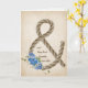 Symbole d'esperluette de corde avec un bouquet de fleurs bleues sur arrière - plan texturé doux pour un anniversaire.