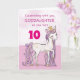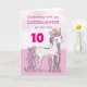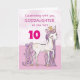 Un doux petit poney rose comme votre filleule qui caracole avec le numéro dix ! Des détails dorés sont tissés dans sa crinière et sa queue. Carte parfaite pour souhaiter son anniversaire à votre filleule !