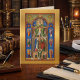 Célébrez l'anniversaire de la prêtrise avec cette belle image catholique traditionnelle d'un prêtre offrant le Saint Sacrifice de la Messe. Tout le texte et les polices peuvent être modifiés. Le fond est un scintillement doré. (Crédit : www.ccwatershed.org/jogues)