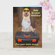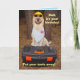 Humorous birthday card pour papa/peinture. On the front, par quoi Moïse a hard, shades, a blue denim bandana, and a tool box. Texte : "Papa, it's your birthday ! Put your tools away !" Le Roi Moïse dans une crown from the party store and a gold bandana. Texte : "You rule today !" Texte: customizable.