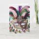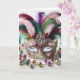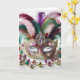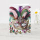 Un masque de mascarade plein de vie est orné de plumes colorées et de bijoux complexes, dégageant un air de fête et d'élégance. Le texte peut être modifié.