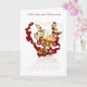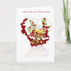 Carte de vœux d'anniversaire avec champagne fleurs rouges cœur et ruban. Avec les remerciements de E.D.Resario. Joyeux Anniversaire en allemand