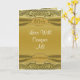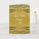 Le scrollwork d'or magnifique et sophistiqué sur un arrière - plan d'or et avec un ruban de finition de satin de faux a complété avec un bijou d'or comme le bouton de monogramme avec les mots le "cinquantième anniversaire". Juste pour votre anniversaire de mariage d'or !