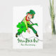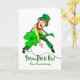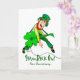 Shamrock dessus ! Votre anniversaire. Un lutin énergique est une vedette du rock et orné avec une guitare de shamrock sur la couverture de la carte de voeux de papier du jour de ce St Patrick. Diverses nuances de vert pour le sentiment du jour de ce St Patrick spécial. Courtoisie principale Liftarn/OpenClipArt de lutin. Studios de Ballanger de ©Shoaff de copyright d'image et de vers.