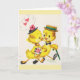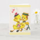 Carte de vœux vintage / rétro pour anniversaire de mariage ou mariage. Adorables petits amoureux se promenant bras dessus bras dessous et très amoureux ! Cœurs, fleurs et douceur ! Carte parfaite pour célébrer l'amour !