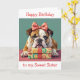 Une drôle de carte d'anniversaire pour une soeur qui aime les bulldogs ! Un mignon Bulldog avec sa tête reposant sur un cadeau d'anniversaire et un joli jeu de mots pour chien à l'intérieur. Je vous souhaite un anniversaire de pattes !