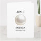 Un design d'anniversaire personnalisé moderne avec la pierre de naissance d'anniversaire personnalisée de Pearl Juin illustrée dans un style minimal élégant. Personnalisé avec un nom pour un souvenir d'anniversaire intemporel et significatif inspiré de la tradition du mois de naissance.