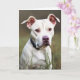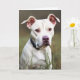 Cette carte d'anniversaire comporte une belle Pitbull blanche.