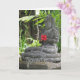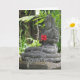 Cette statue en pierre grise d'un chiffre humain posé tient une fleur rouge de ketmie. Elle repose méditer paisiblement dans le jardin de paix des jardins botaniques de Bali, sur un fond des plantes verts de jungle. Les fougères et les paumes vertes agissent l'un sur l'autre avec les troncs gris et les ombres noires. Sur la partie inférieure de l'image est le mot, "tranquilité." À l'intérieur de est le message, ". Paix, et joie sur votre anniversaire ! Ubud rentré par photo, Bali, en Indonésie. Copyrght Gail Storrs 2006.