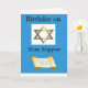 Voici une carte d'anniversaire spéciale de Yom Kippour pour la famille ou les amis qui comporte un arrière - plan bleu et blanc, l'étoile de David et le Torah.