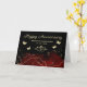 Elégant, élégant texte personnalisé Happy Anniversary card avec encre rouge splash or parties scintillant noir arrière - plan, écriture manuscrite moderne typographie, élément flèche d'amour et beaux papillons. Une carte de voeux chaleureuse et sincère qui est parfaite pour célébrer une occasion spéciale comme un anniversaire. Personnalisez ce design en changeant le message et votre nom, ce qui en fait un cadeau unique pour votre famille ou vos amis.