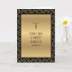 Célébrez l'anniversaire de la prêtrise avec cette belle image d'un crucifix doré sur un fond doré scintillant bordé d'un motif noir et or. À l'intérieur se trouve un poème "TU ES PRÊTRE POUR TOUJOURS" avec un dessin en noir et blanc de l'autel. Le texte et les polices peuvent être modifiés.