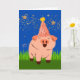 Carte de voeux en papier d'anniversaire amusante avec un porc portant un casquette d'anniversaire et entouré d'herbe et d'étoiles d'or. Drôle à l'intérieur du message "It's Your BOARthday and all's SWINE." Copyright © Shoaff Ballanger Studios, 2022.