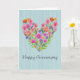 C'est une belle carte d'anniversaire pour un couple qui célèbre son amour. Ce sont des fleurs disposées en coeur sur un arrière - plan de rayures bleu clair.