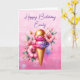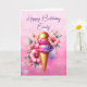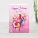 Carte d'anniversaire personnalisée. Belle crème glacée rose, violet et or cône et fleurs faites dans un style aquarelle aquarelle aai art.