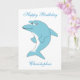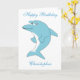 Carte d'anniversaire avec un dauphin que vous pouvez customiser avec n'importe quel texte de votre choix. Si vous avez besoin d'aide pour vous customiser, contactez-nous via le lien de cette page. Carte d'anniversaire de dauphin