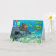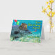 Vous êtes unique dans un banc de millions ! La carte de vœux d'anniversaire pour le gendre présente l'avant d'un poisson tenant des ballons avec sa nageoire et soufflant dans un avertisseur de fête. Il porte également un chapeau de pêche camouflé avec des leurres de pêche attachés. Art, image et vers copyright © Shoaff Ballanger Studios, 2024.
