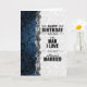 Souhaitez un joyeux anniversaire à l'homme que vous avez épousé lorsque vous choisissez ce salut d'anniversaire masculin et sentimental pour votre partenaire de vie. L'imprimé cachemire bleu avec argent et blanc sur la droite et une chaîne de boutons d'argent donne à cette carte une touche parfaite juste pour lui.