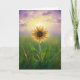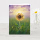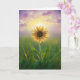 Un tournesol solitaire se dresse au milieu d'un champ d'herbe verte, avec une lueur chaude de la lumière du soleil qui semble rayonner à travers ses pétales. Tout le texte peut être modifié.
