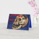 Un vieux crâne avec un fond bleu qui est sur une carte d'anniversaire.