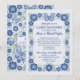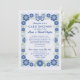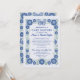 Cette invitation personnalisée pour une douche de cartes d'anniversaire de mariage est conçue pour organiser une douche par courrier, invitant famille et amis à envoyer des cartes d'anniversaire à un couple spécial célébrant un anniversaire de mariage marquant. Le design dessiné à la main présente une bordure florale de style Talavera rétro inspiré avec un cadre et un papillon détaillé en haut, créé dans des couleurs bleues jolies, avec une zone centrale spacieuse pour un texte personnalisable afin que vous puissiez ajouter des noms, l'année d'anniversaire, les détails de la fête, l'adresse postale et les instructions sur quand et où envoyer les cartes. Le verso de l'invitation présente une extension coordonnée de l'œuvre d'art florale pour une présentation cohérente et artistique. Idéal pour un 25e anniversaire, un 40e anniversaire, un 50e anniversaire d'or ou toute célébration marquante où les proches honorent le couple de loin, cette invitation personnalisée pour une douche de cartes d'anniversaire est parfaite pour les familles éloignées, les célébrations virtuelles, les hommages surprise d'anniversaire et les projets de souvenirs, attirant les acheteurs à la recherche d'une invitation pour une douche de cartes d'anniversaire, une invitation pour un anniversaire par courrier, une invitation pour une célébr