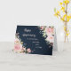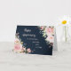 Joyeuse carte d'anniversaire mariage pour mère et père avec élégantes fleurs d'aquarelle rose rousse et arrière - plan bleu marine et vers coeur.
