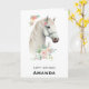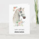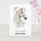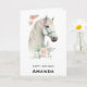 Carte d'anniversaire avec une illustration magique d'une belle tête de cheval blanche. Entouré de jolies petites fleurs roses. Boho ambiance élégante pour les amateurs de chevaux.