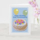 Ce gâteau décoré et les ballons jaunes et verts font une couverture festive pour cette joyeuse carte de voeux d'anniversaire. N'hésitez pas à changer le verset intérieur pour répondre à vos besoins.