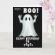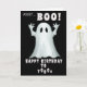 Carte d'anniversaire Halloween noire rétro fantôme effrayant.