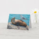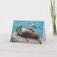 Un lion de mer se détend sur un rocher au bord de l'océan tandis qu'une mouette perche sur son ventre, semblant rire. Le message intérieur peut être modifié.
