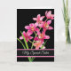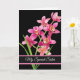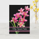 Carte d'anniversaire avec un arrière - plan noir et de jolies orchidées roses.Customisez cette carte ou achetez-la telle quelle.