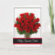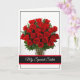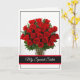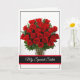 Carte d'anniversaire avec de jolies roses rouges dans un vase.