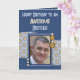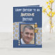Joyeux anniversaire à un frère génial. Ajoutez une photo et un message. Bleu et marron. Modifiez le texte pour qu'il convienne à une autre personne.