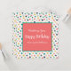 Carte Anniversaire Mod Orange Turquoise Dots Blanc Script. Le modèle est configuré pour que vous personnalisiez le texte.