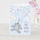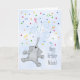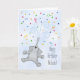 La carte d'anniversaire mignonne comporte un éléphant illustré et joyeux versant les confettis colorés dans le ciel bleu. Customisez l'avant pour que le nom de l'enfant fasse une carte vraiment personnalisée. Cet animal populaire de jungle est sûr d'apporter un sourire au visage de n'importe quel enfant !