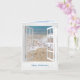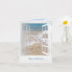 Mariage anniversaire avec les coeurs de plage et sable avec surf de mer en mousse et vue sur la fenêtre ouverte. Le texte peut être modifié ou supprimé.