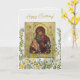 Un champ de fleurs sauvages jaunes et bleus avec une icône de Theotokos et la carte d'anniversaire chrétienne orthodoxe Christ Enfant. Customisez avec tous vos renseignements personnels et vos préférences.