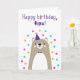 Carte d'anniversaire pour Oupa. Si vous appelez votre grand-père Oupa au lieu de grand-père, cette carte d'anniversaire est parfaite pour lui. (Oupa signifie grand-père en afrikaans.) Votre oupa va adorer le design mignon, moderne, coloré, scandinave de cette carte d'anniversaire qui comprend un ourson en peluche marron et gris avec un casquette de fête violet et des confettis rose, jaune et bleu avec le texte "Joyeux anniversaire, Oupa !" Rendre cette carte personnalisable ! Cliquez sur "Edit Design", "Inside Bottom/Right : Text & Images", "Text" et "Add text" pour écrire votre propre message personnalisé à Oupa intérieur !