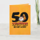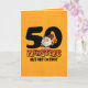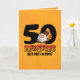 Amusant design de 50ème anniversaire avec un caveman de dessin animé souriant tenant un club et torche. Le texte dit 50 PRÉHISTORIQUES MAIS PAS EXTINCTS. Arrière - plan en détresse. Personnalisez-le avec votre propre texte personnalisé. PinkInkArt original !