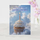 En souvenir d'une mère bien-aimée qui a fêté son anniversaire. Un joli petit cupcake est assis dans les nuages avec une bougie et des mots de confort et d'amour.