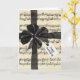 Black sheer bow with a gift tag on vintage sheet music.