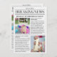 Faites de chaque premier anniversaire un événement digne d'une manchette avec cette carte d'information de dernière minute personnalisable. Dotée d'un design créatif de style journal, cette carte met en valeur les moments marquants et les photos précieuses du grand jour. Parfaite en tant que carte d'annonce ou de remerciement, elle offre une façon unique de partager la joie d'une célébration de premier anniversaire avec les proches. Capturez la magie, les rires et les souvenirs dans un objet de collection qui sera chéri pendant des années.