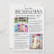 Faites de chaque premier anniversaire un événement digne de faire la une avec cette carte d'information de dernière minute personnalisable. Avec un design créatif de style journal, cette carte met en valeur les moments marquants et les photos précieuses du grand jour. Parfaite en tant que carte d'annonce ou de remerciement, elle offre une façon unique de partager la joie d'une célébration de premier anniversaire avec les proches. Capturez la magie, les rires et les souvenirs dans un objet de collection qui sera chéri pendant des années.