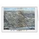 Illustration vintage vue à vol d'oiseau des rues de la capitale Austin, Texas (comté de Travis) avec le fleuve Colorado au premier plan. Beaux cieux bleus à l'horizon du paysage. L'Institution pour sourds et muets et l'Asile de fous et dans les encarts du coin inférieur.