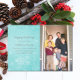 Carte photo de vacances Whimsical mais simple Snowflake Swirls avec un éventail de fleurs tourbillonnantes et des flocons de neige sur un look arrière - plan turquoise aquarelle. Cette élégante carte à plat photo est facile à customiser avec une photo et votre accueil de Noël personnalisé. Cliquez sur "customiser" pour trouver des options de personnalisation supplémentaires. Photographie © Storytree Studios, Stanford, CA