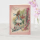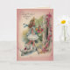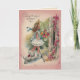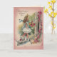 Sur le devant de cette carte, vous voyez une jeune fille marcher dans une maison avec un bouquet de fleurs avec un chien blanc à côté. Elle porte une robe frileuse blanche avec un grand casquette en paille avec un ruban bleu dessus. Le petit chien blanc a un arc rose autour du cou, et la maison a une vigne avec des fleurs roses et rouges qui poussent dessus. Belle salutation d'anniversaire, avec un joli message. Vérifiez qu'il correspond à l'affranchissement. Tous les modèles de cartes datent d'au moins 55 ans et sont numériquement recréés pour une utilisation d'aujourd'hui.