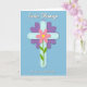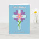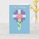 This card features a light blue background with a soft, fabric-like texture that sets a calm spring scene 🌷. In the center sits a pale aqua cross with dashed edging that looks like careful stitching, giving it a gentle, crafted feel. Behind it, four soft purple shapes fan out like petals or rounded hearts, creating a tender halo that hints at closeness and care. Layered on the cross is a bright pink flower with a sunny yellow center, held by a slim green stem and two curved leaves, like a small gift offered with affection 🐰. Subtle shadowing under each element makes the layers look slightly raised, as if placed one by one. The words “Easter Blessings” appear near the top in white lettering, while “for my Son and His Family” sits along the bottom in matching white text. The pale aqua cross is framed by lavender heart-like petals, with the pink blossom centered neatly over it.